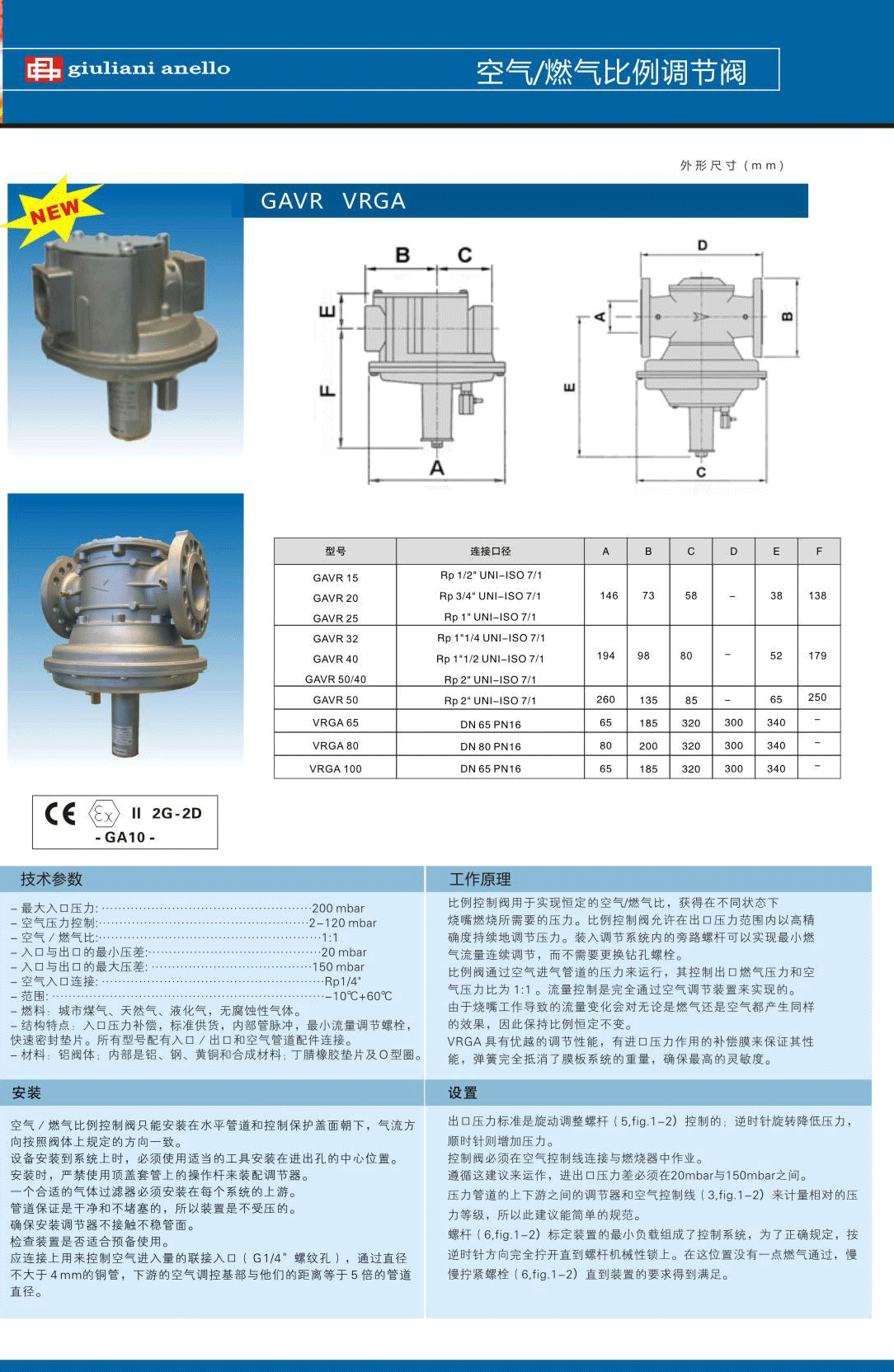 朱利安尼--空燃比例閥型號(hào):GAVR15,GAVR20,GAVR32,GAVR40,GAVR50/40,GAVR50,VRGA65,VRGA80,VRGA100